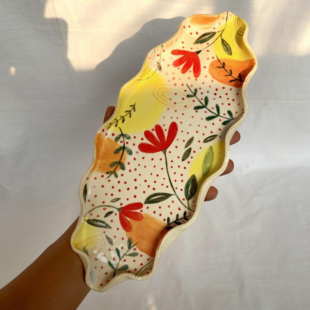This hand painted colorful tray is a must have to make your serving collection complete.