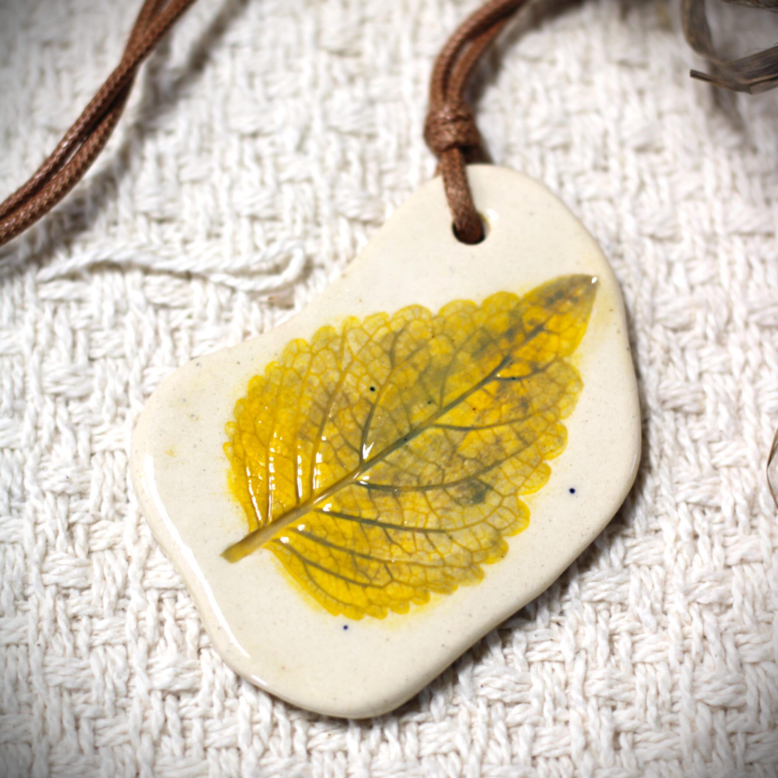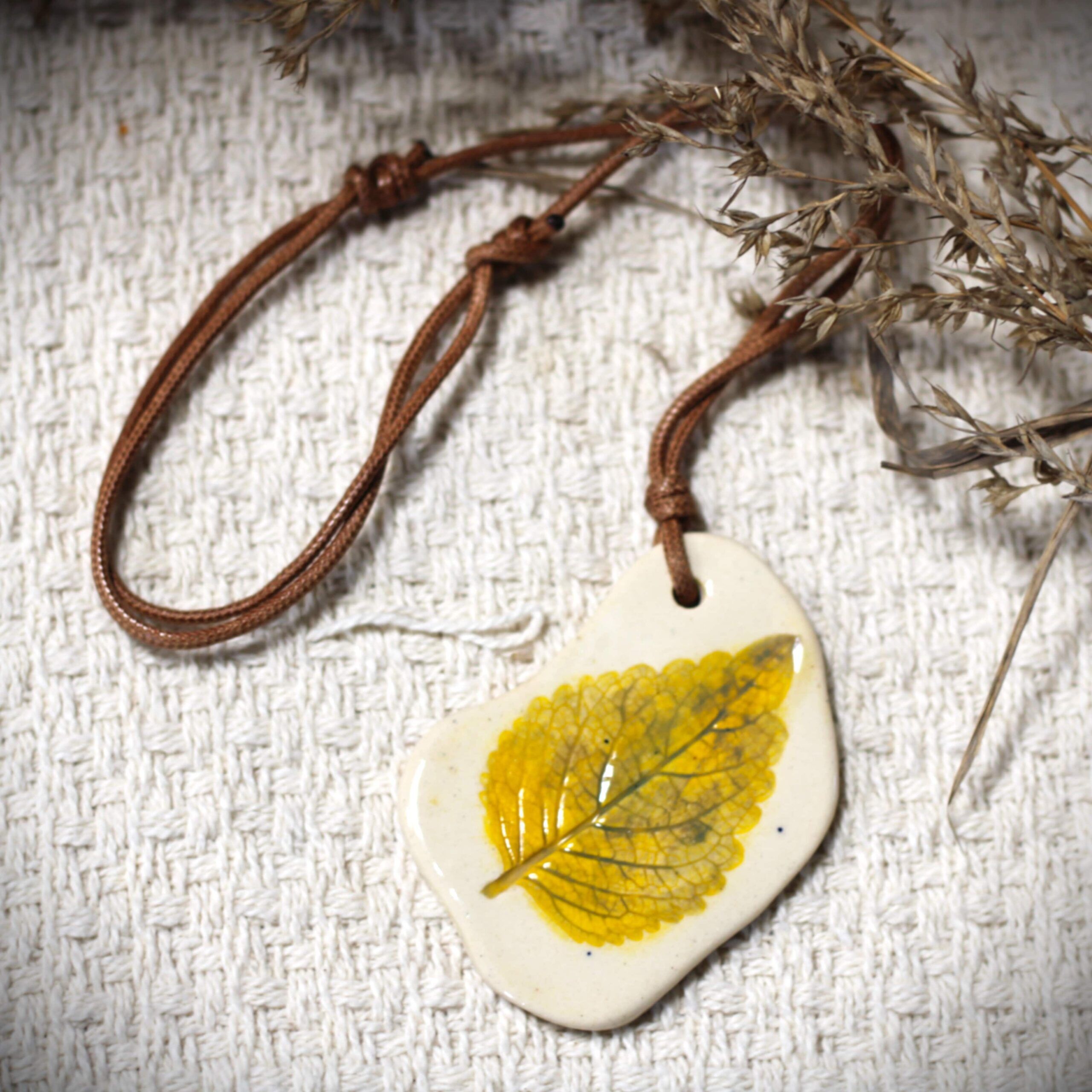 Inspired by nature, our handcrafted ceramic pendants made using real leaf impressions. Each piece captures the intricate details of natural leaves, preserving their delicate veins and textures in clay. Perfect for those who appreciate the beauty of nature.