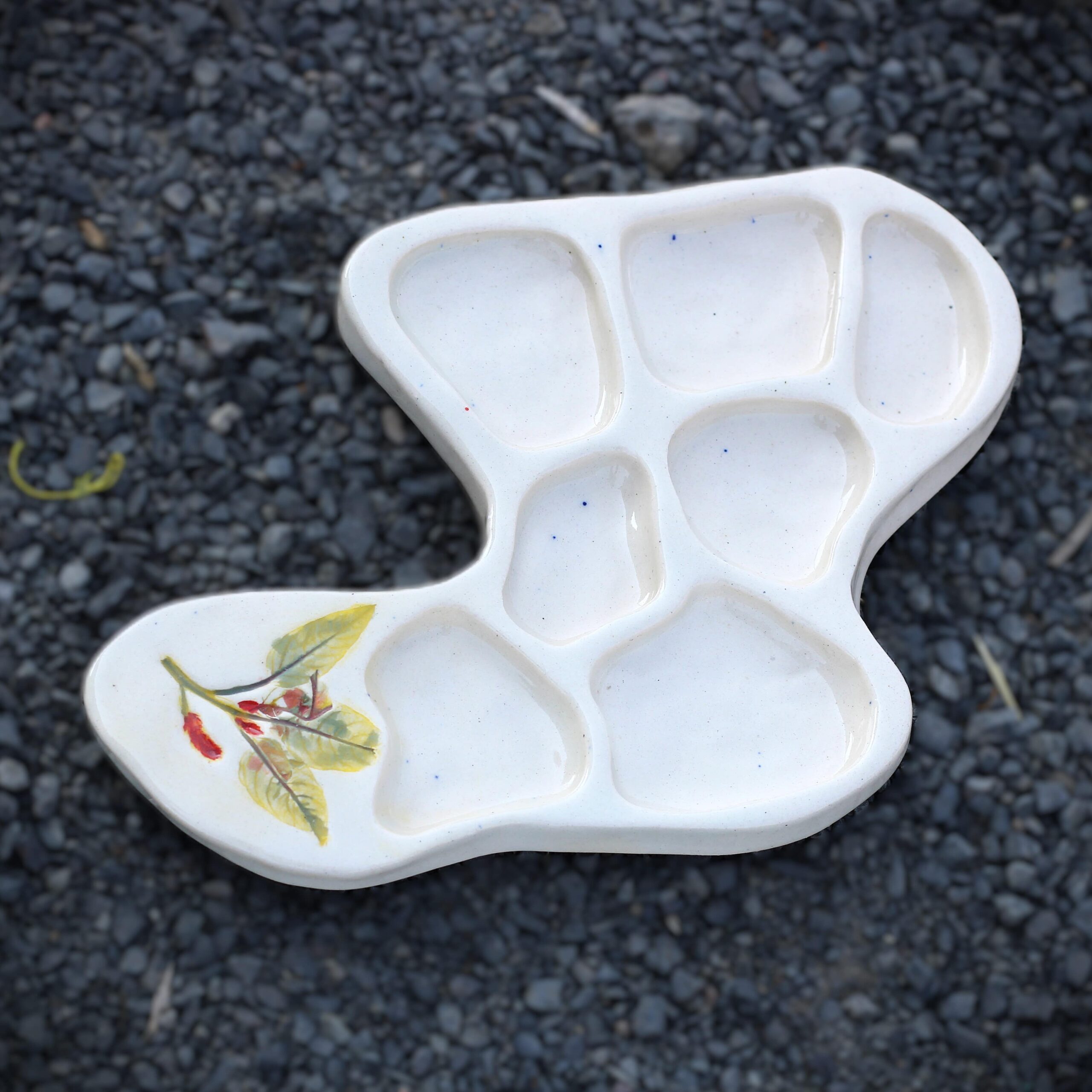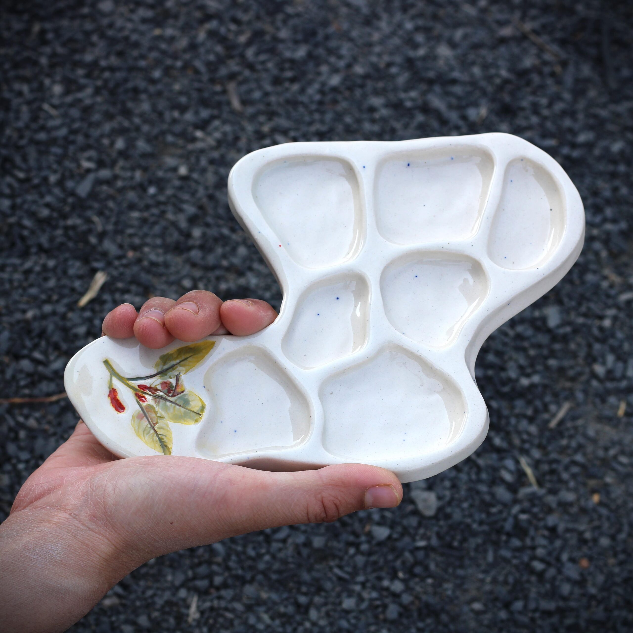 Nature-inspired, handmade ceramic palettes with real leaf impressions—easy to clean, scratch-free, and perfect for vibrant colors.